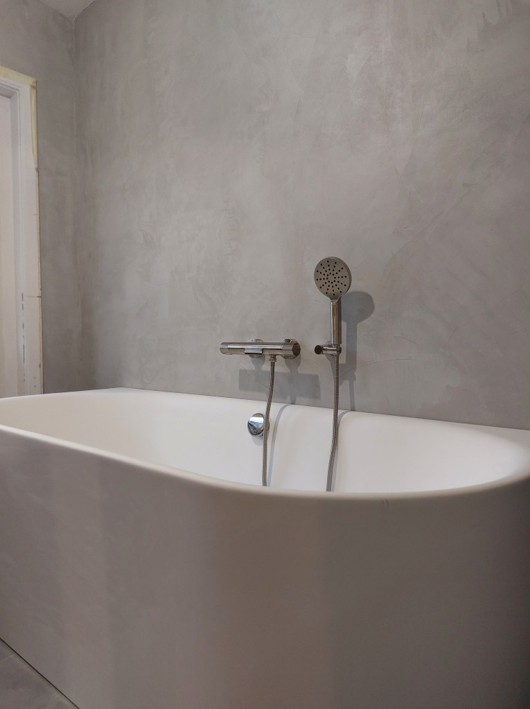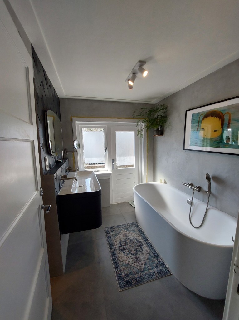 In Wageningen heb ik de beton cire afwerking gedaan van deze zeer luxe badkamer.